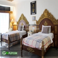 Kamar hotel yang indah ini didekorasi dengan gaya lama yang dikelilingi oleh ukiran vektor Bali. Kamar Deluxe hadir dengan pilihan dua tempat tidur, tempat tidur Double atau/ tempat tidur Twin dan balkon pribadi dengan pemandangan pegunungan yang menakjubkan. Bersantai di udara pegunungan yang segar di balkon pribadi Anda sendiri.