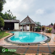 Villa 9 memiliki 2 villa yang berada dilokasi yang sama dan berdekatan, dengan pasilitas 1 kolam renang. Dapat disewakan secara terpisah maupun keduanya. Apabila kita menyewa salah satunya saja untuk kolam renang akan non private. Lokasi villa 9 berada dekat dengan tempat pariwisata Curug Cilember Puncak Bogor, memiliki view pegunungan dan udara yang sejuk sangat cocok untuk acara keluarga maupun rombongan.