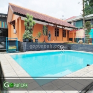 Salah satu villa dengan kapasitas 20 s/d 25 orang, yang memiliki view pegunungan dengan fasilitas 3 kamar tidur, kolam renang private dan 3 kamar mandi yang dilengkapi air panas, berlokasi dekat dengan tempat pariwisata taman safari sangat cocok untuk menemani liburan anda.